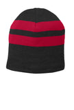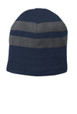 Classic stripes and warm fleece lining make this beanie a stylish cold-weather must-have.|